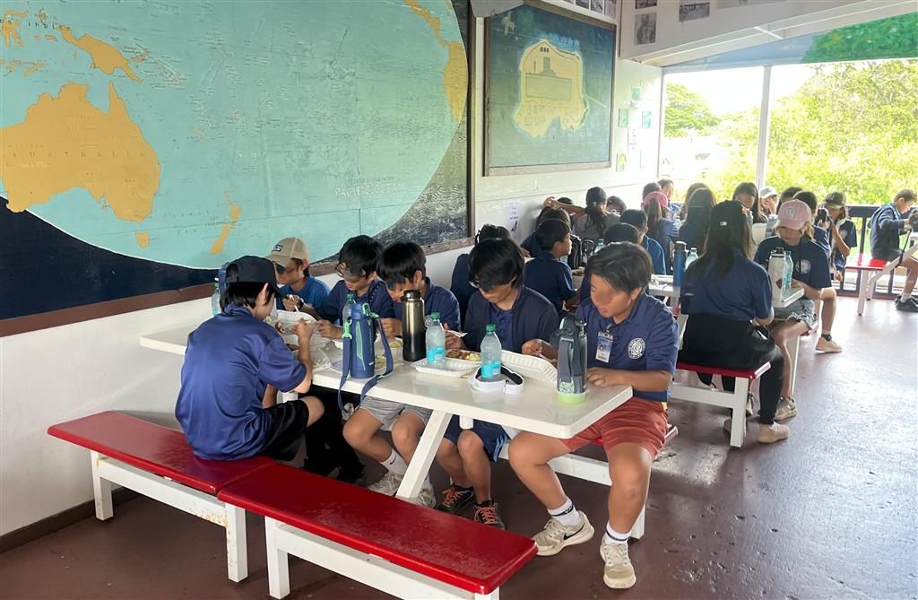 プランテーションビレッジでは、ハワイに移住してきた様々な国の人々の暮らしについて、ガイドさんから詳しく解説していただきました。当時に人々の生活の様子や、それが現在のハワイの暮らしと二銅関係しているのかをわかりやすく学びました。児童たちは、自分たちが住むハワイのルーツを知ろうと、真剣に話に聞き入り、熱心にメモを取る姿が見られました。